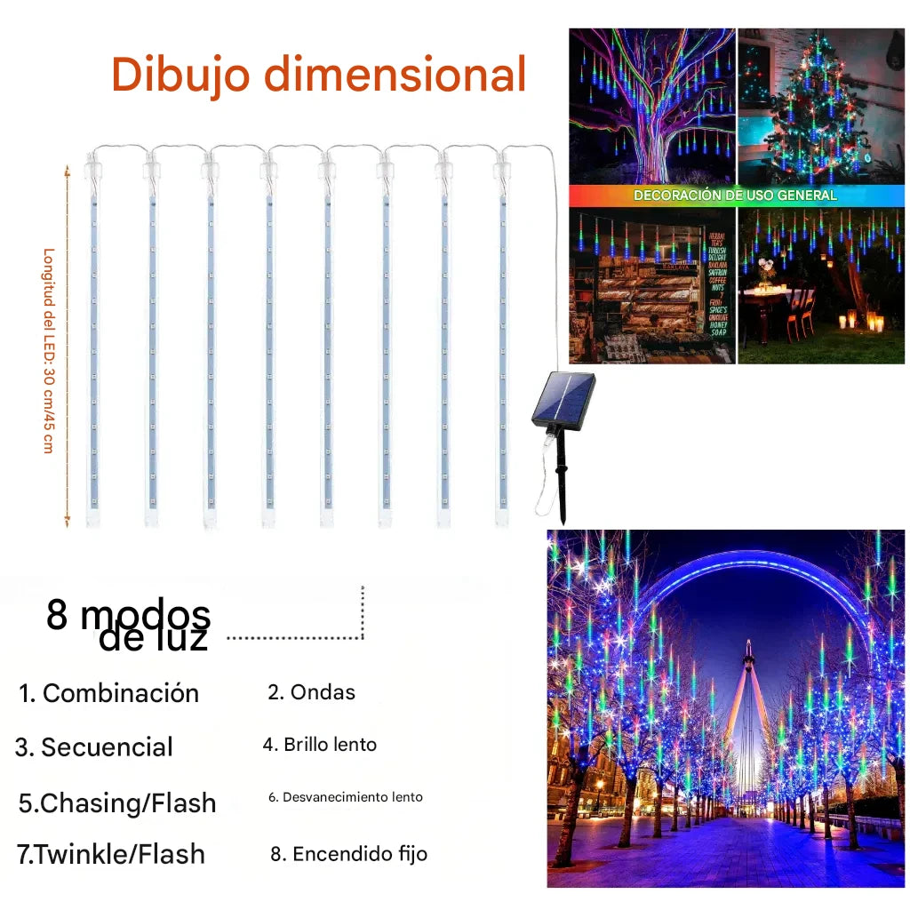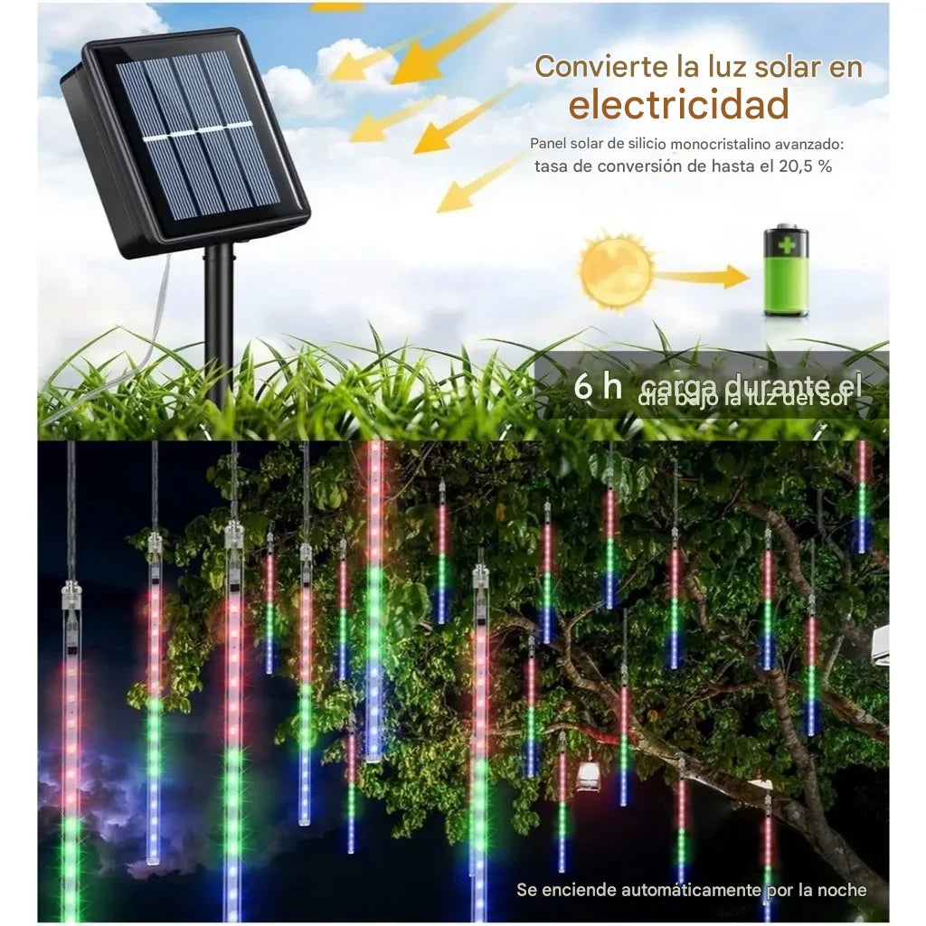 🎁 Paquete incluye: instalación completa de luces meteoro con panel solar.