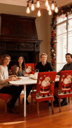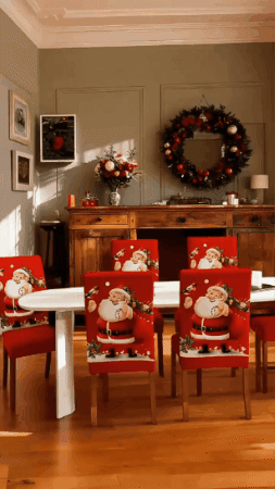 Set x6 Forros Navideños para Silla + Mantel de Regalo – Decora tu Hogar esta Navidad